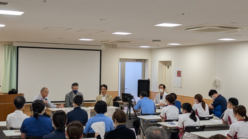 講演後には当院の楠事務長も交えてのディスカッションもあり、災害が起きる前にやるべき備えや被災した際にどのような行動をとるべきなのか考えるよい機会になりました。