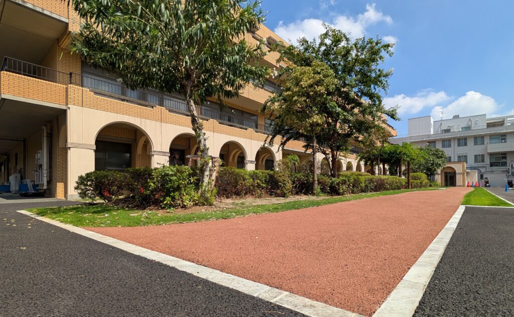 当法人は、病院と2つの特別養護老人ホームがあります。このため法人内の敷地が広く屋外の歩行練習も敷地内で安全に進めていくことが出来ます。